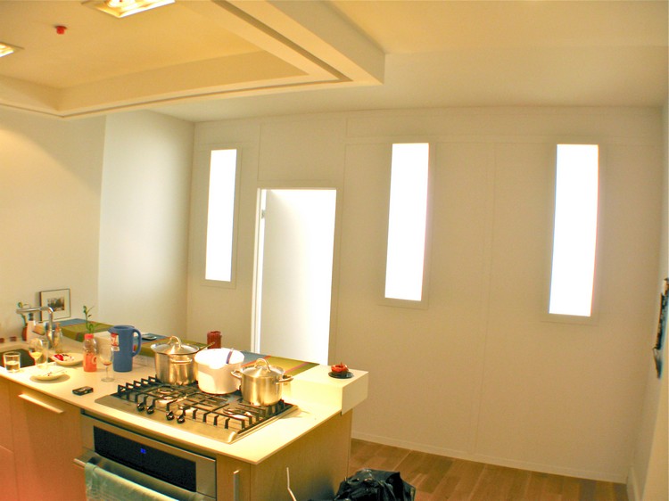 Loft Wall – Pressurized floor to ceiling temporary wall with top opening for light and ventilation.